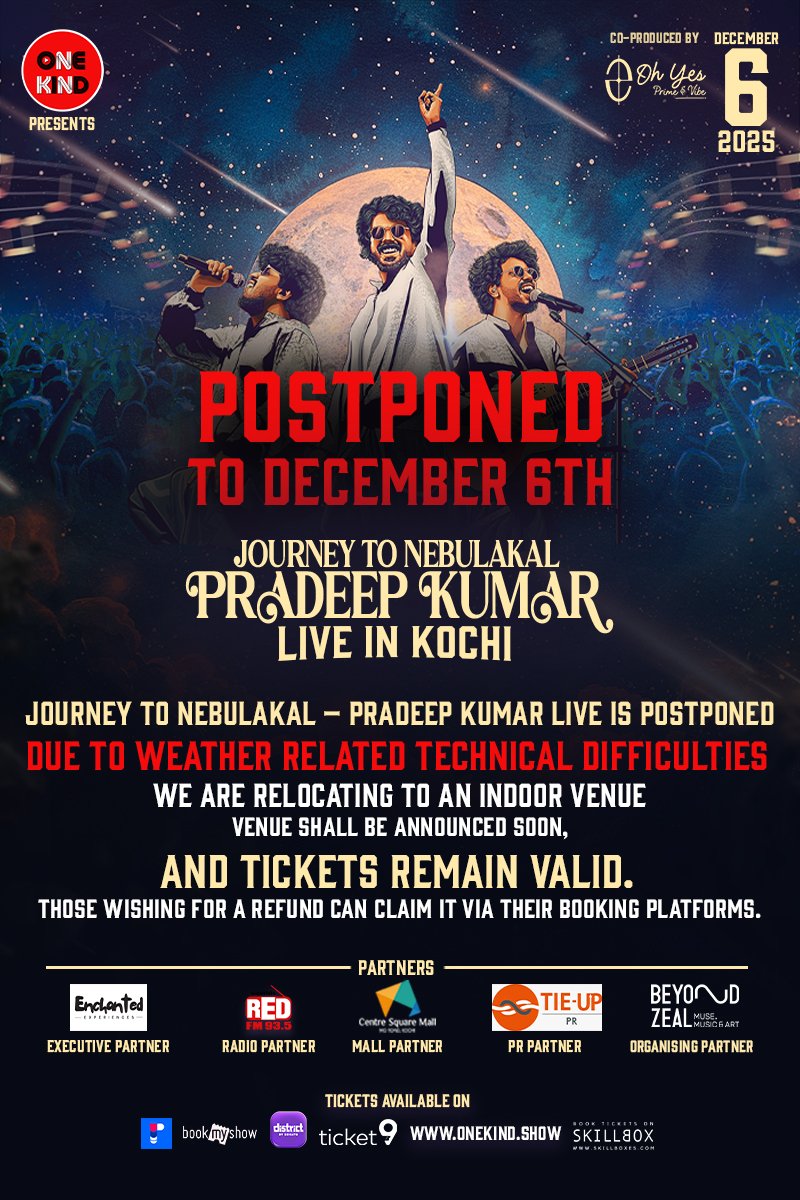 Don’t miss Kochi’s biggest musical experience of the year—Journey to Nebulakal: Pradeep Kumar Live. Tickets are limited, book now!
